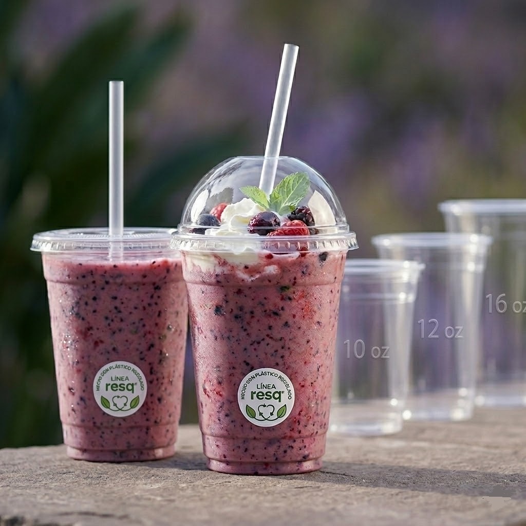 Impulsa tu negocio con la línea resq®, fabricada con hasta 100% plástico reciclado posconsumo. Es la combinación perfecta entre estética cristalina y compromiso ambiental.